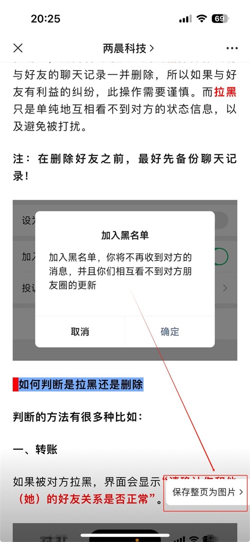 完成第一步操作之后,点击右下角出现的“保存整页为图片”选项,需要注意的是“保存整页为图片”在屏幕上仅仅会停留5秒左右的时间,需要及时点击。