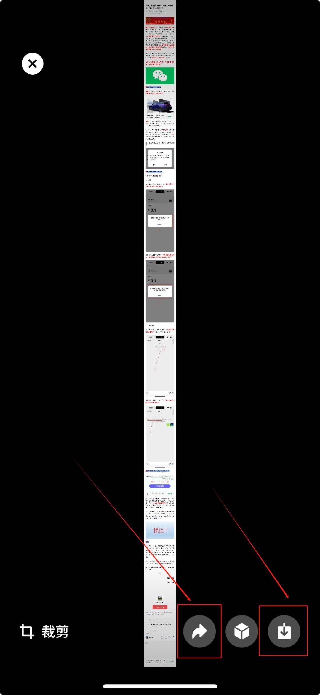 完成以上操作之后,我们就会看到刚刚成功截取的长图。此时,我们既可以点击分享转发也可以点击下载保存到手机相册。