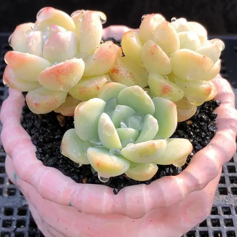 2、冰玉的状态除了取决于光照以外,其实还和温差有着密不可分的关系。不要长时间把冰玉放在恒温环境中,要能够给予一定的温差刺激,这样更利于叶片上色,这一点很多花友都不知道。