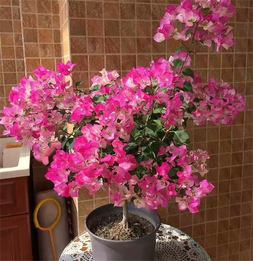 三角梅盆栽,不能养在光线太差的地方,没有阳光,它就会光是长叶子不开花,甚至一个花苞都见不到,就算是再勤花的三角梅,没有阳光是不行的。