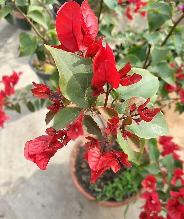没有这些也要加入一些底肥,羊粪鸡粪之类的腐熟的有机肥,三角梅喜肥,只有肥力充足,才能开花更多,花色更加鲜艳,枝子上的花儿更多。