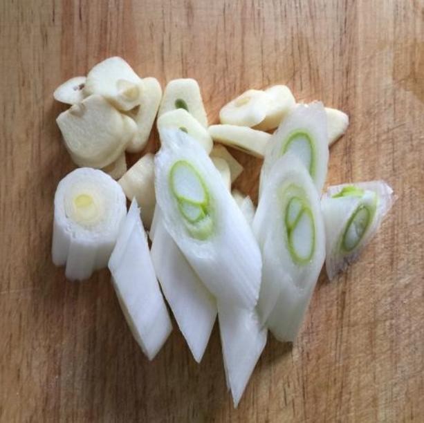 第三步:热锅烧油,油热后把葱蒜放入爆香,葱蒜爆香后加入干红辣椒段,2个八角,一小把花椒籽,炒出香味,然后加入适量的清水,加少许老抽调色,加入少许蚝油提鲜,加入适量的食盐,少许胡椒粉,少许鸡粉,少许十三香增香,