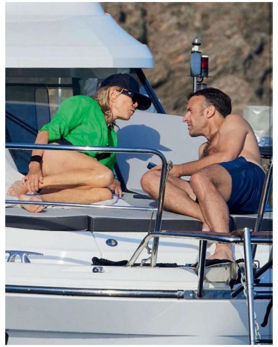 布丽吉特和马克龙躺在游艇的甲板上,尽情享受着属于他们的二人世界。
