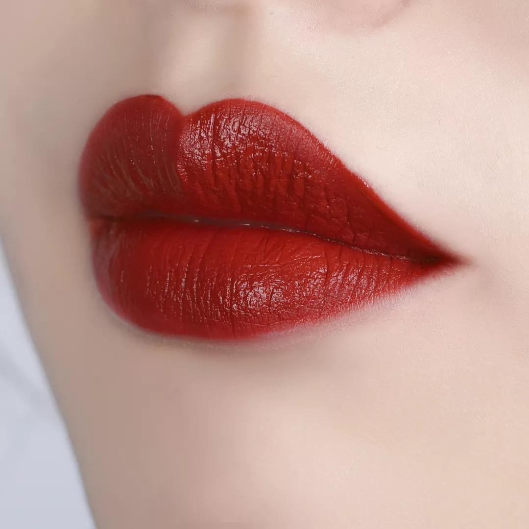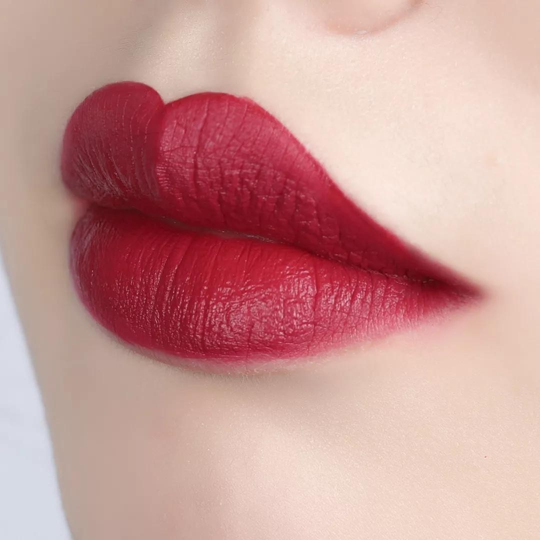 上嘴后哑光的妆效也非常高级