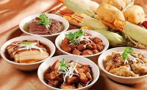 八大蒸碗分别是:小酥肉、条子肉、黄焖仔鸡、黄焖带鱼、四喜丸子、酥牛肉、扒羊肉和八宝甜饭。
