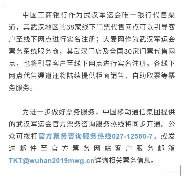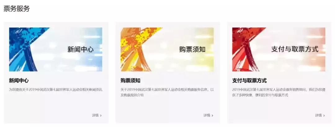武汉军运会官方票务网站正式上线后,将陆续发布各比赛场次的日程安排、门票价格、购票程序、销售政策、观众须知等更为详尽的内容,及时更新各比赛场馆售票亭地址及最新票务信息,为全球公众提供完美的票务服务和观赛体验。敬请关注哟~