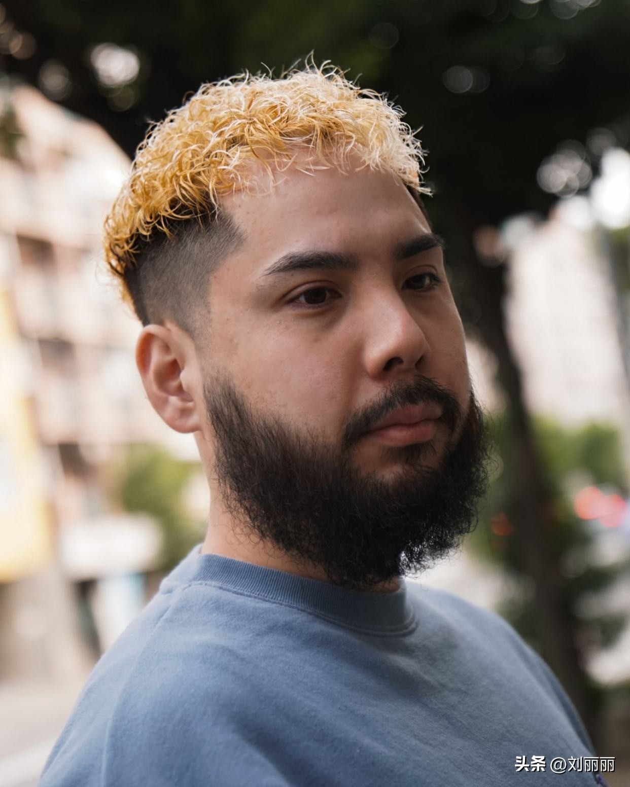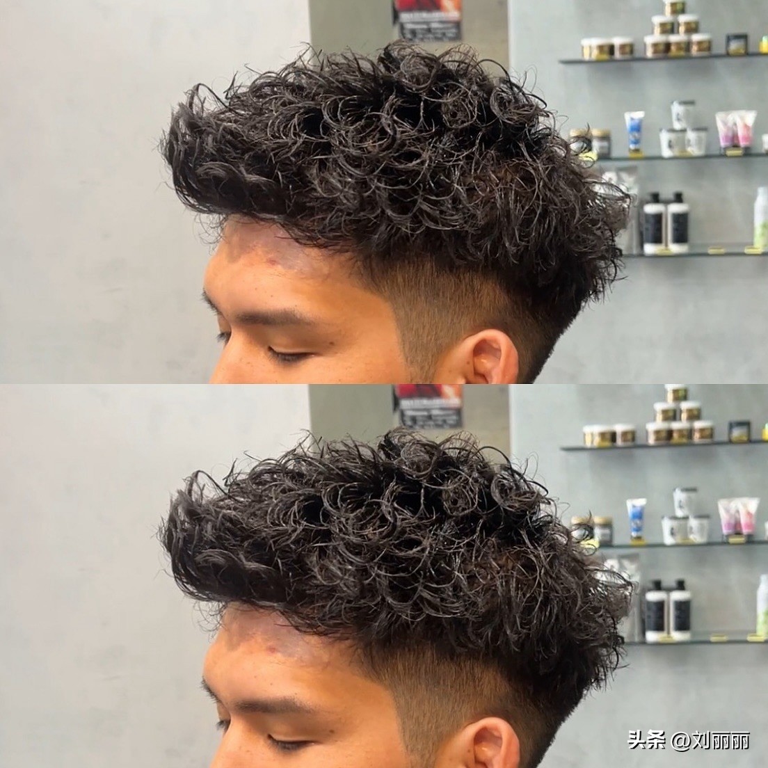 而那些顶部采用卷发设计的发型,则为男士们带来了别样的时尚感。纹理烫的卷发造型,使头发富有层次感和动感,增添了一份随性与不羁。