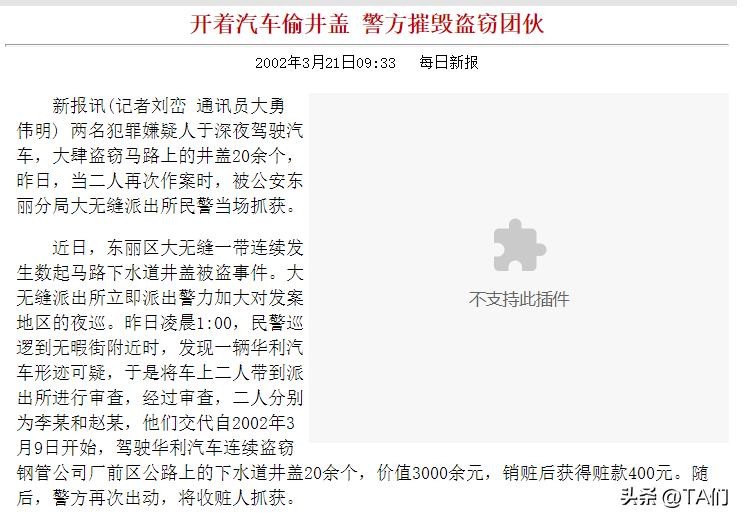 据媒体报道,在2004年,郑州市高新区曾有一名50多岁的居民,因连偷三个窨井盖,被判处3年6个月有期徒刑。
