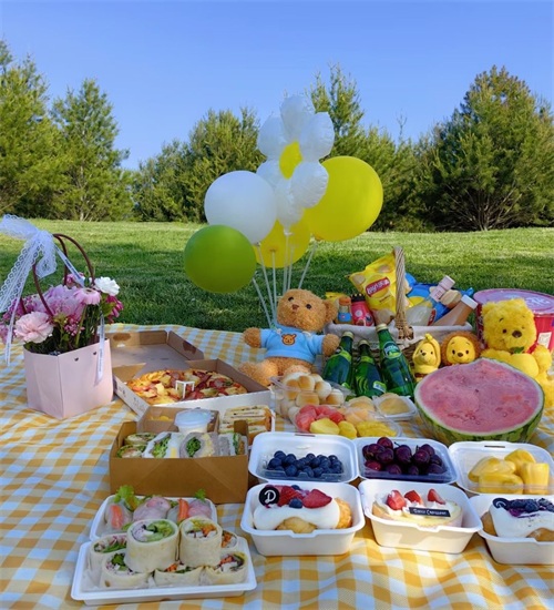 中午,在公园的草坪上铺上野餐垫,开启一场惬意的野餐。
