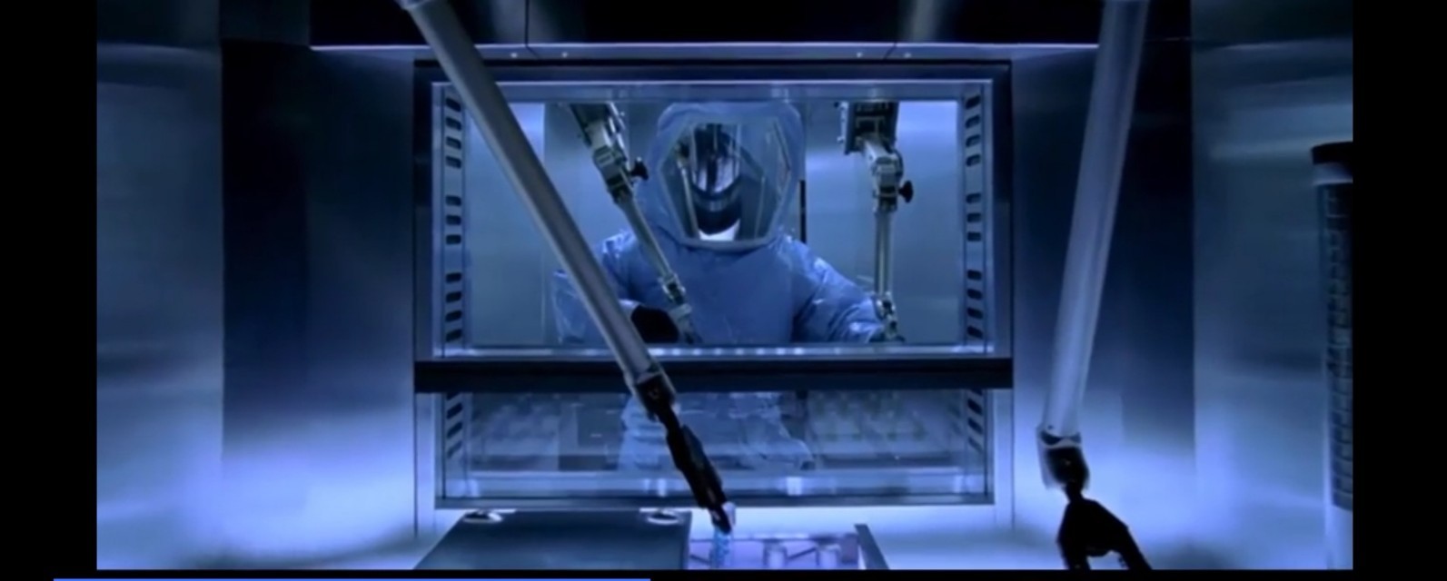 开头用旁白的方式为以后的故事作了铺垫。美国安布雷拉公司是一家世界上最大的医疗用品制造商,全美国甚至全世界都有不少人在用他们的物品。不过,就连他们的雇员也不知道,安布雷拉(保护伞)公司其庞大的利润真正来自军火交易,也就是他们幕后研究基因生化武器。