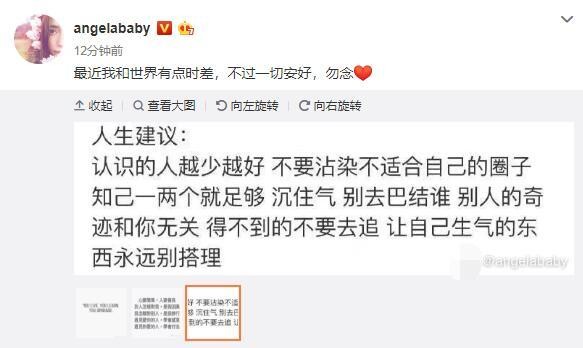 baby发文似有深意 与杨幂有关?baby回应深夜发文 angelababy怎么了?