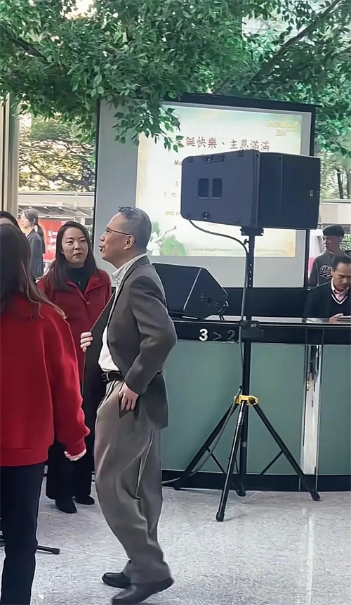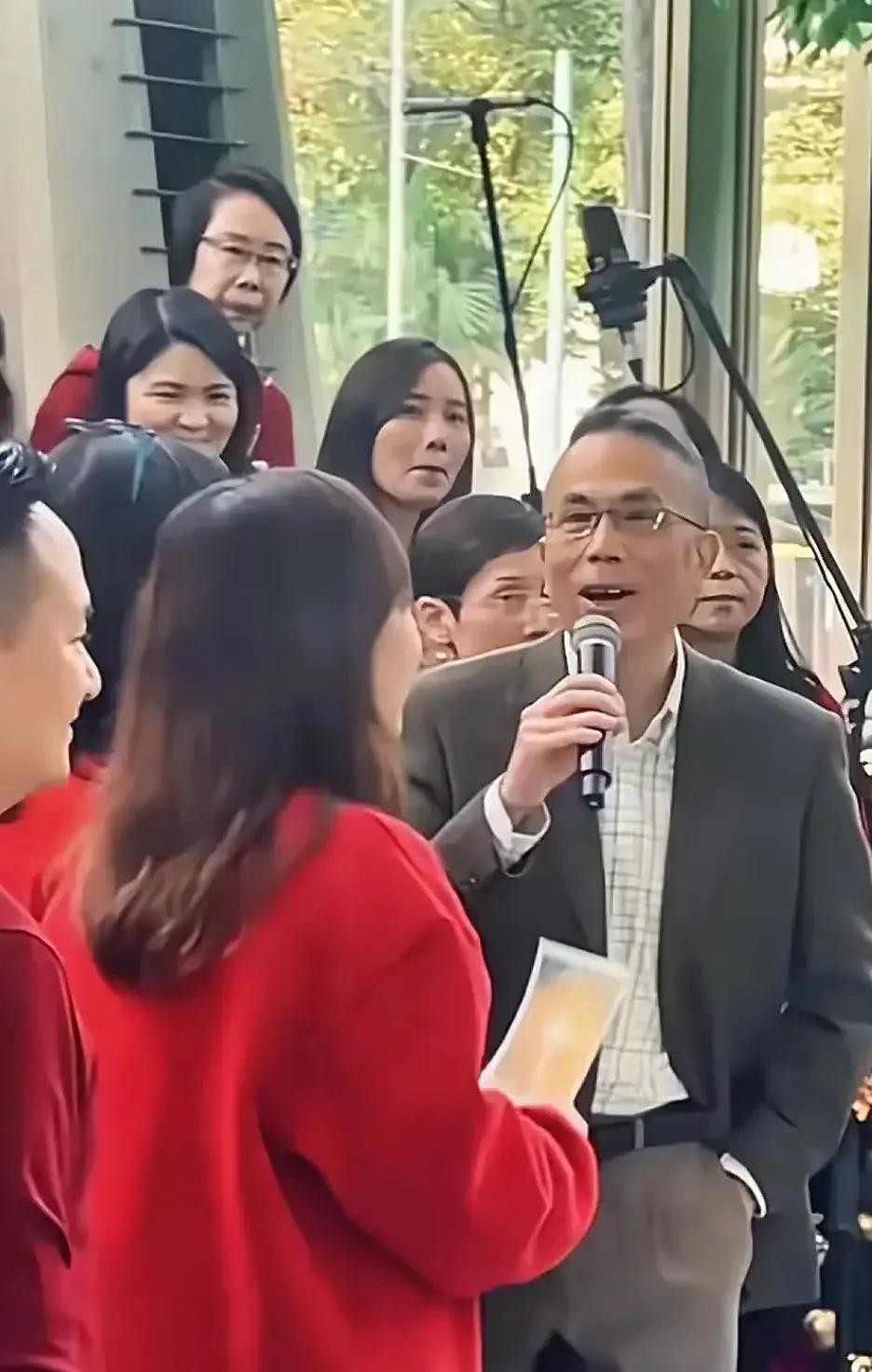 近日,他出席自家集团员工的圣诞活动,出席活动的工作人员为了衬托节日气氛,都一身红衣。唯独李泽钜一身西装,他这件西装风格老套,设计过时,像上世纪80年代的风格,李泽钜穿上之后,显得很随性。