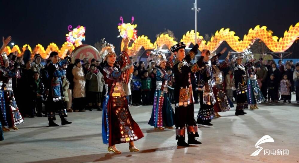 走进元宵节当天的亦乐田园内,“龙行龘龘”游园会里128组“龙”元素的花灯以飞龙跃海之姿盘踞而上,威猛而瑰丽,游客不时驻足赏灯、拍照留念;在非遗匠人手中,1600℃的铁水瞬时化作璀璨星光,非遗打铁花表演引来游客阵阵欢呼;熊熊燃烧的篝火,优美的苗族舞蹈,游客纷纷加入到载歌载舞的行列中,在欢声笑语中欢度元宵佳节。