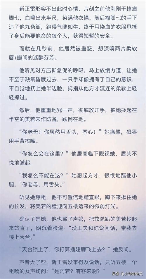美若战战兢兢如履薄冰,靳正雷不愿与美若偷偷摸摸,设计仙人跳计划把她妈妈打发走,却不慎自己喜当爹!三个人走入死胡同,美若心疼幼妹,让靳正雷认下,靳正雷不能放弃美若,美若母亲要求一个身份。最终,靳正雷和她妈妈达成交易,娶她,但把美若给他。美若最终还是被靳正雷吃干抹净,这段太虐心了!