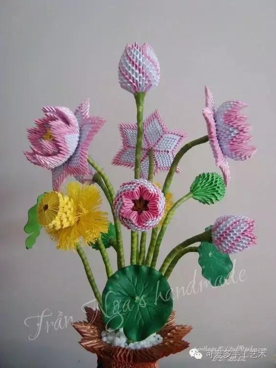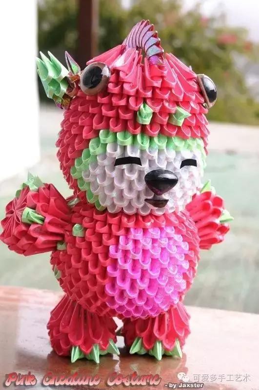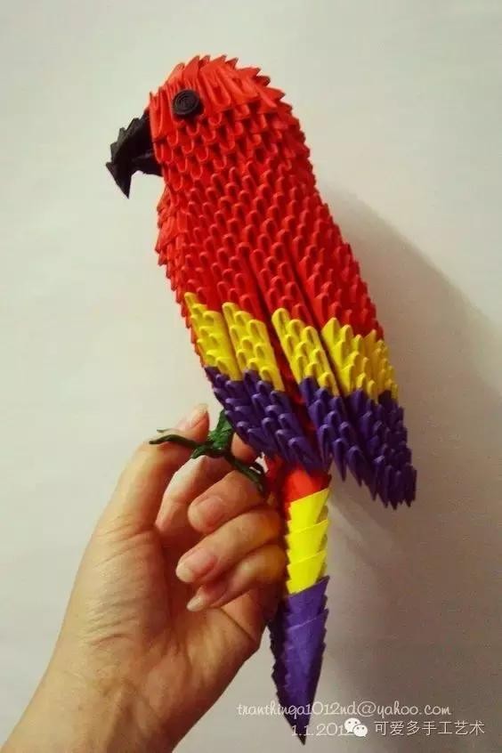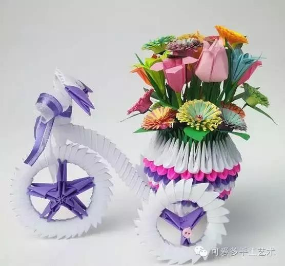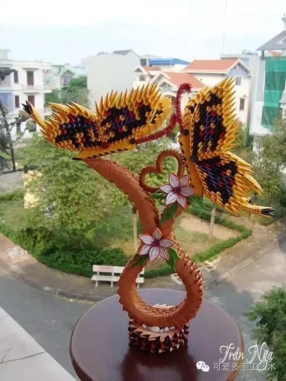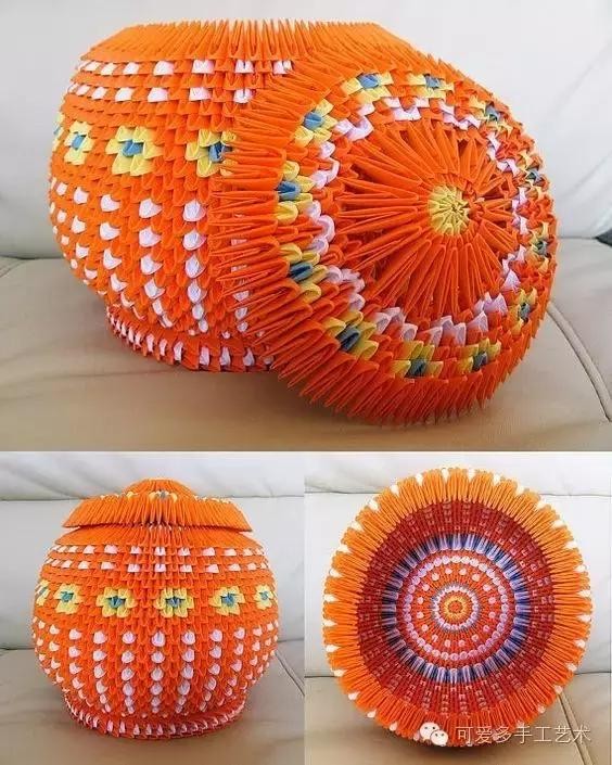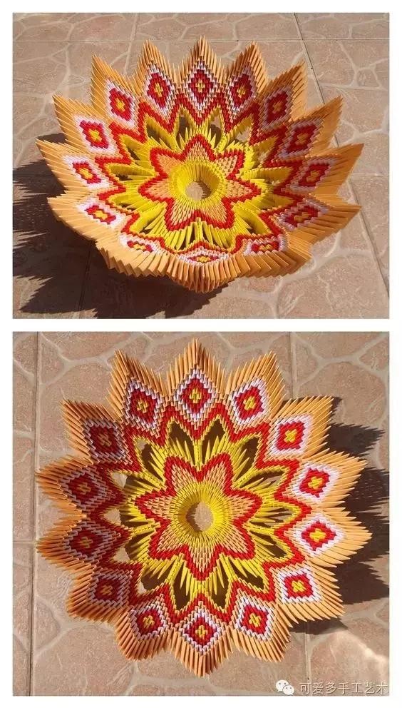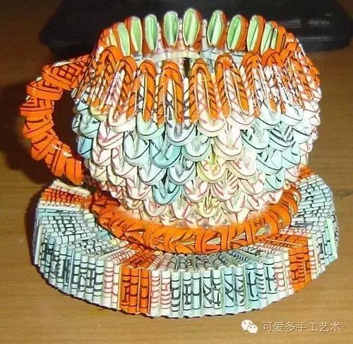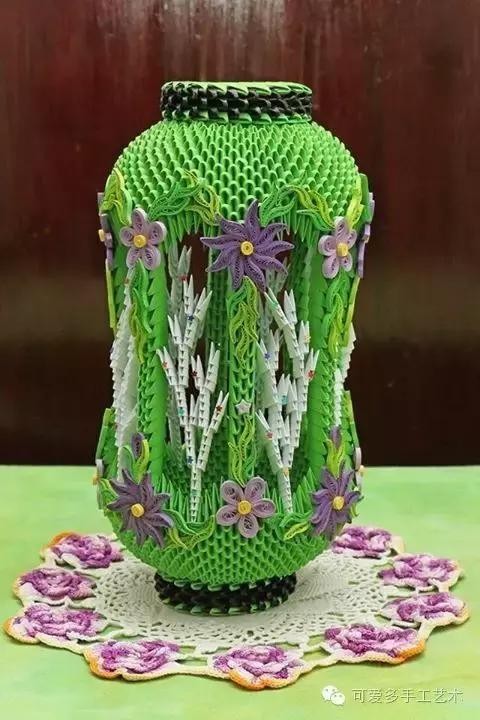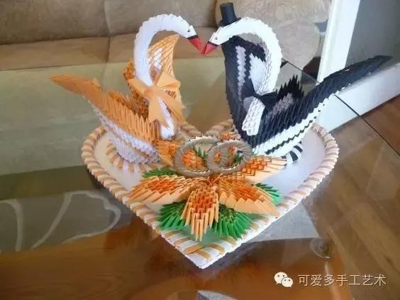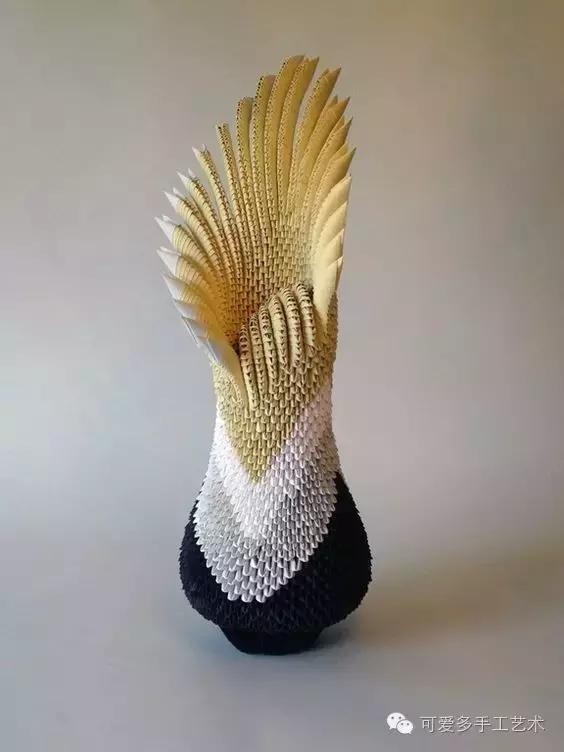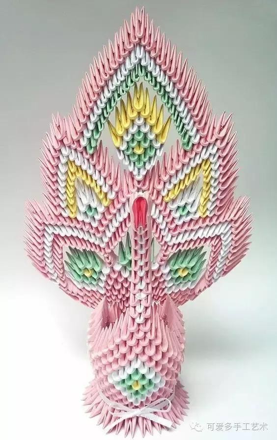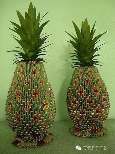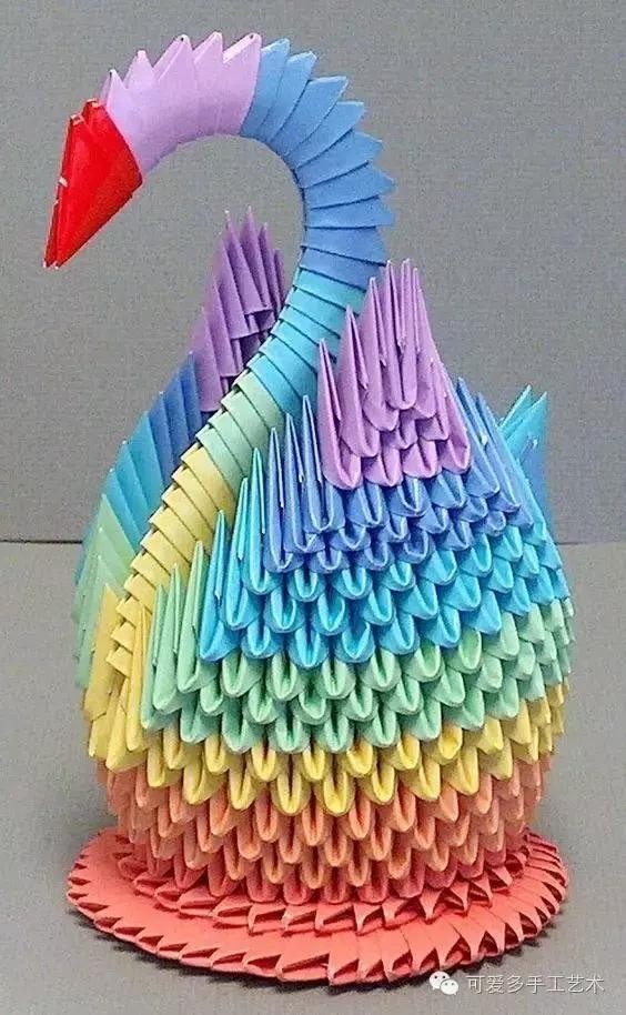 一个个用纸折成的小三角就能拼插出各种新颖别致的“大摆件”,这种旧物利用的3D纸艺术就是三角插,可用平时的旧杂志或广告纸裁成长方形,然后折成小三角形拼插出自己喜欢的造型,如笔筒,天鹅或各种可爱的小动物,如果不喜欢用旧的纸觉得拼出来的颜色太杂不好看,可以买彩色的纸来折,这样造型更加丰富多彩,更加惊艳立体一点。