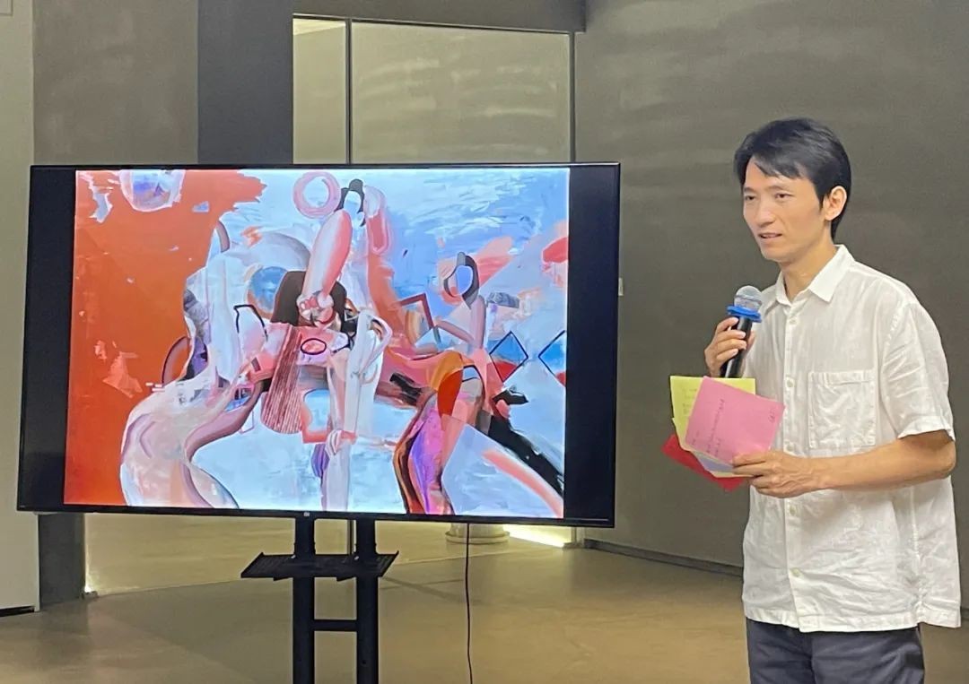 西安美术学院油画系主任杨洋(中)分享感受