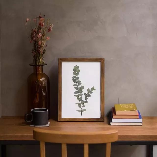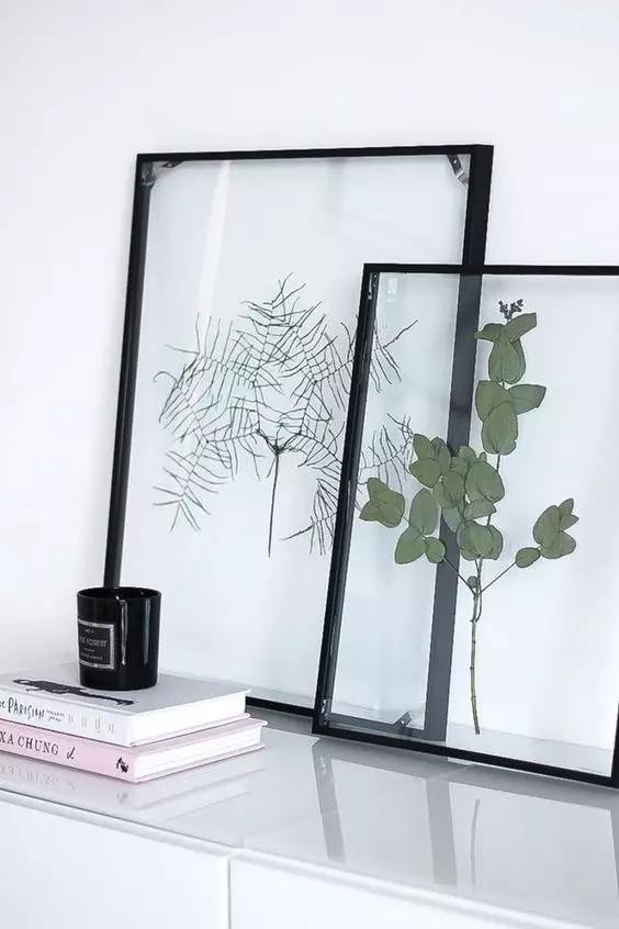 如果你有时间的话,可以自己DIY表框,边缘用厚的卡片纸或薄的塑料来做(边框颜色一定要统一均匀,如果有掉色或不均色可以用漆重刷一下)直接挂墙上或放边柜上,清新又自然。