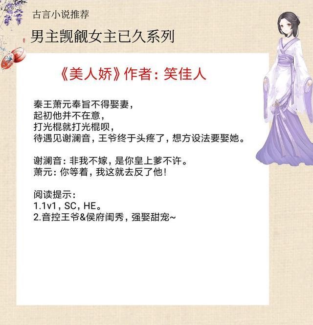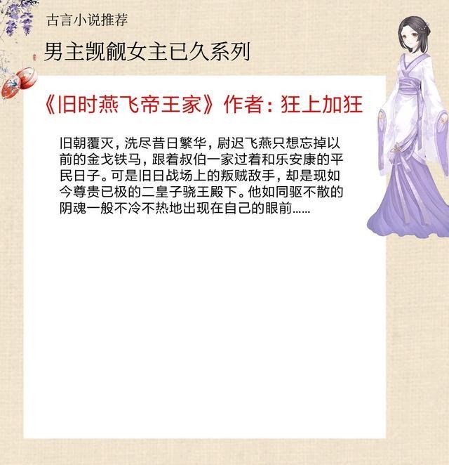 书评:纯古言,宠文,男强女强文,女主是将门之后,果敢机智,不是傻白甜,男主真的是阴险狡猾,男主一直暗恋着女主,使计谋破坏了女主和男n号的姻缘,但是男主内心OS:哼,我只是让小燕儿早点看清此人的真面目。算是胁迫女主嫁给他做侧妃,