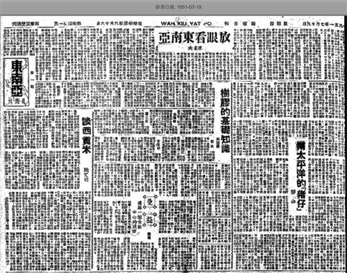那么,在猫山王榴莲还未能长途运输到香港、在新加坡刚开始建造第一代组屋、在印尼还没有大规模输出女佣的年代,香港本地的报纸上呈现了怎样的东南亚呢?