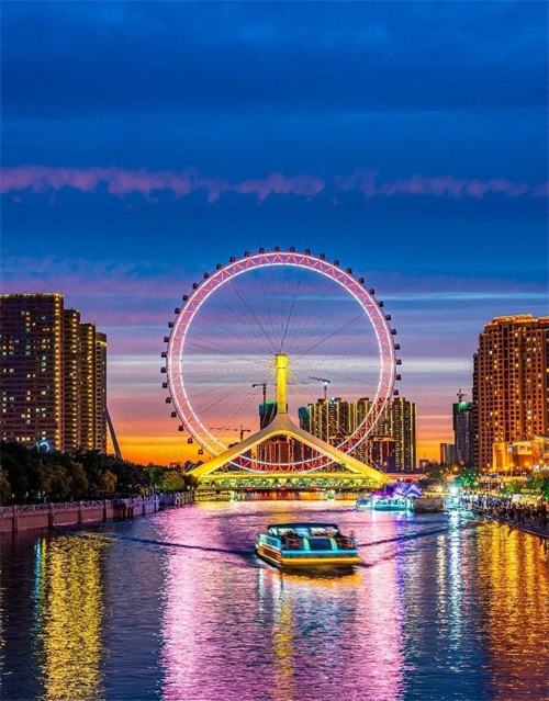 7. 天津之眼:天津之眼是世界上唯一一个建在桥上的摩天轮,也是天津的地标之一。