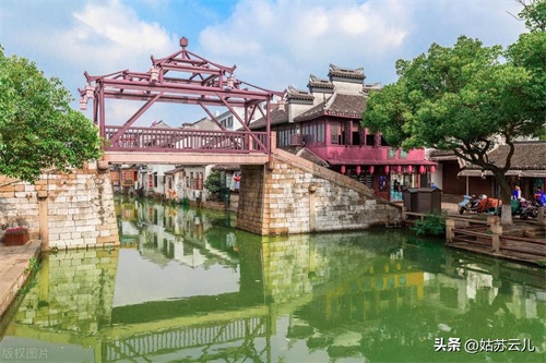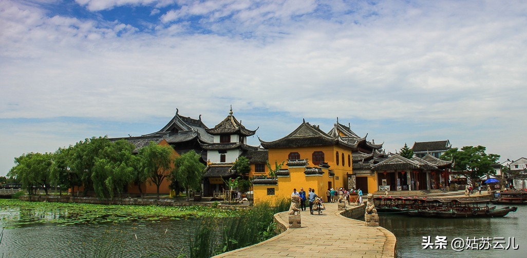 苏州东部偏远的甪直镇上。一进去就能看到代独角神兽“甪端”,免费。费孝通先生誉为“神州第一水乡”.看点有叶圣陶纪念馆、保圣寺三元桥万安桥。古镇规模不算大,名字也比较拗口,宣传上颇为吃亏。免费的古镇苏州排第二,江南排第五应该没毛病。