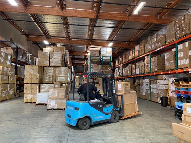在林超的引导下,记者参观了办公区与仓库。据林超介绍。公司原来的地址不在这里,仓库面积仅20000尺,2017年搬到这里,集团占地面积10万尺,包括仓库75000尺,院子25000尺,扩大了5倍。在仓库,记者看到一排排高高的货架码满了货物,几位搬运工在忙碌着往外运送货箱。在海外仓区,林超指着堆积的包裹说,这些都是快递到中国的。现在是旺季,一天全美货量平均出货1万个包裹,中国到美国方面一个月大概进口30条集装箱。