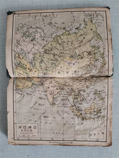 1946年9月,中华民国时期的地图册,里面有世界地图和中国地图,反映了第二次世界大战结束后的世界新格局。