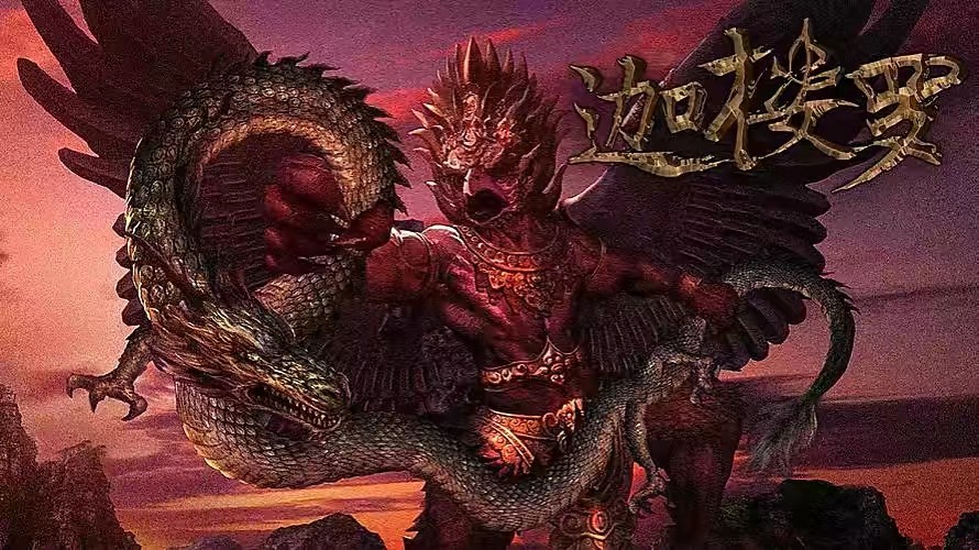 东汉末年刘熙的《释名》中写道:“迦楼罗”是一种大鸟,翅有种种庄严宝色,头上有一个大瘤,是如意珠,此鸟鸣声悲苦,以娜迦为食。”迦楼罗每天要吃一条娜迦王及五百条龙。等他临终时,无法进食,上下翻飞七次后,飞往金刚轮山,全身自焚,只剩一个纯青琉璃心。