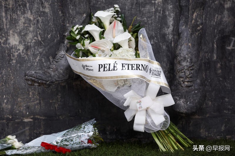 巴西桑托斯的维拉贝尔米罗体育场的比利雕像前12月30日摆放着悼念比利的鲜花。(路透社)