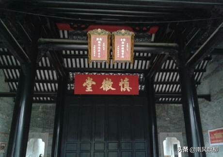 胡氏大宗祠里的”慎徽堂”。胡氏大宗祠是胡姓的始迁祖祠堂。胡姓祖籍福建崇安,其祖先到南雄保昌县,南宋时从南雄珠玑巷迁到广州濠畔街,后迁至黄埔村。祠堂面阔三间,进深三间,头门两侧的门联上写着“派溯崇安源远流长绵世祚”、“基开黄埔根培本固大宗祊”。