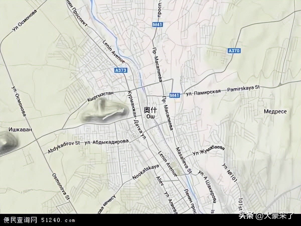 奥什市的地理位置十分独特,它坐落在费尔干纳盆地东南端,阿克布拉河出山口附近,宛如一颗镶嵌在中亚大地上的明珠。费尔干纳盆地是中亚人口最密集的地区之一,这里土地肥沃,水源充足,为奥什市的发展提供了得天独厚的自然条件。奥什市南部与塔吉克斯坦交界,北边挨着乌兹别克斯坦,东南与中国新疆的喀什接壤,处在这样一个多国交界的位置,使其成为了中亚地区重要的交通枢纽和贸易中心。