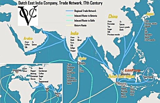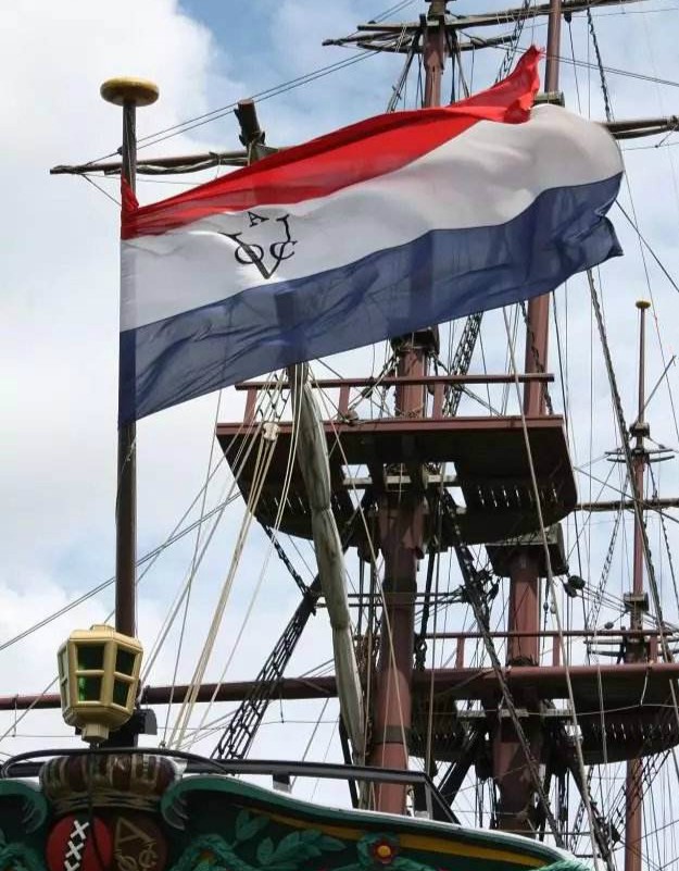 图注:荷兰东印度公司殖民旗飘扬在爪哇海上空