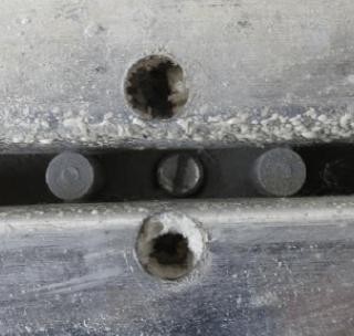 1)在预铺设的相邻的四块涂装板相对的四个角部的位置处,将隔离件以螺纹套朝上的方式放置于散热层上,将每块涂装板的角部,分别置于相邻的两个圆柱形突起之间,并且相邻的两块涂装板的边缘,抵靠于一个圆柱形突起的两侧以形成 3mm 宽的缝隙;2)将压紧片控入螺纹套中,压紧每块涂装板的角部,待涂装板完全粘接牢固后,将压紧片撤除,缝隙间用相同颜色结构胶填实。