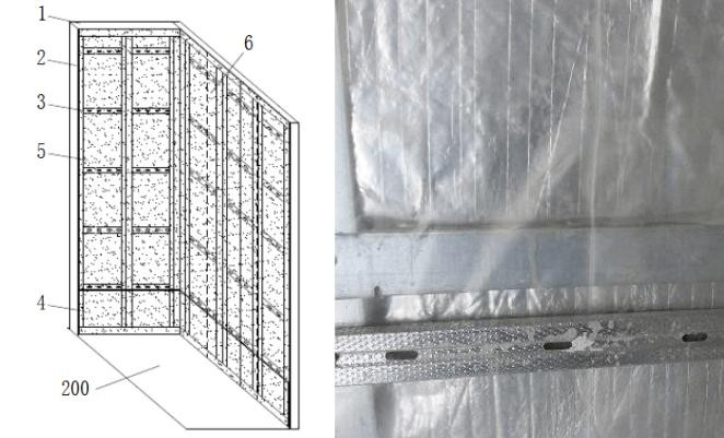 1天地龙骨 2竖向龙骨 3横向龙骨 4防水坝 5岩棉 6防水隔膜 200防水层