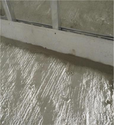 1)沿卫生间新建隔墙安装 300mm 高防水坝;2)防水坝与结构地面相接处,用水泥砂浆抹八字脚;3)在结构墙面、地面及防水坝表面涂刷第一道涂膜防水涂料,厚度需达到 1.5mm 厚;其中:防水坝采用 8mm 厚硅酸钙板,防水涂料采用JS-Ⅱ型。