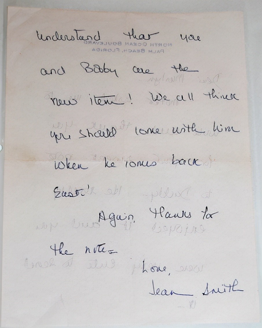 这封信是由已故的李·斯特拉斯伯格的儿子发现的,斯特拉斯伯格是玛丽莲的前表演老师,梦露曾给他留下过几件随身物品,信上写着肯尼迪的妹妹简·肯尼迪·史密斯写给玛丽莲的信。信上写着:“要知道你和罗伯特是新恋人。我们都认为他回到东部时,你应该跟他一起回去。”