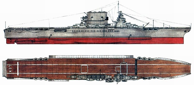 对于战列巡洋舰,其中包括美国的列克星敦级,日本的天城级战列巡洋舰。对于美国海军来说,如果它按照该条约放弃所有六艘列克星敦级,则将损失至少1340万美元,但条约准许美国利用规定必须废弃的军舰船体改装两艘3万3千吨级航空母舰。美国因此于7月1日下令将其改建为航空母舰(日本的赤城号与加贺号亦有相似命运)将停建的列克星敦级中进度最快的列克星敦号和萨拉托加号改建成航空母舰。原设计中的4座双管16英寸(406毫米)主炮、装甲、弹药库等被移除,排水量减低了8,500吨。舷侧的装甲被保留、而甲板装甲则被强化。龙骨的大体结构与及水下防护并未更改。两舰皆于1927年完工,列克星敦级是当时世界上最大的航空母舰,它们拥有当时世界上最长的飞行甲板,并且在此后的18年中一直稳居世界上最大航空母舰的地位。其采用封闭舰首,单层机库,全通式飞行甲板长达271米,岛式舰桥与巨大而扁平的烟囱设在右舷。4座双联装203毫米口径火炮分别装在上层建筑前后,用于打击水面目标。列克星敦级的防护装甲与巡洋舰相当,起初舰上亦装有起重机,可回收水上飞机及飞船,战时则可被改为防空炮。机库最初设计可容纳120架飞机,但后来却只能容纳90架。该舰装有16台主锅炉,采用涡轮-电力推进器,最大功率可达135240千瓦,列克星敦级亦曾是世界上功率最大的舰船。有例为证:1930年1月,列克星敦号亦曾为华盛顿州塔科马市的10万居民供电一个月。由于当地冬季严重干旱,水力发电中断,美军将列克星敦号庞大功率的蒸汽轮机接通岸上的电缆,成为临时“发电厂”。总共供电425万千瓦时。列克星敦级亦为美国提供了许多宝贵的使用航空母舰的经验。