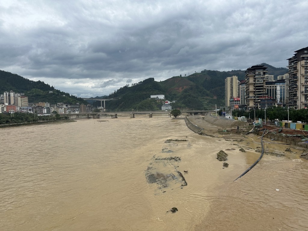 6月25日,榕江县城旁边的河道。