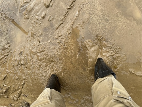6月25日,村超球场内的淤泥。