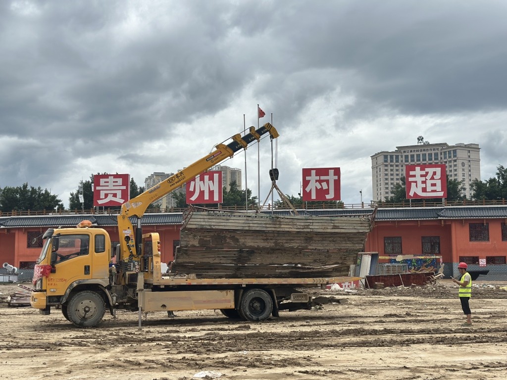 27日下午,村超球场内仍在继续清淤和清理杂物。作业现场指挥人员称,通知是今天内完成,但他不敢打包票,因工程车经常被困在半路上。