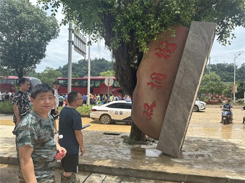 由于道路中断,何廷耀带队绕行了200多公里路,于下午1点才抵达榕江水灾现场。