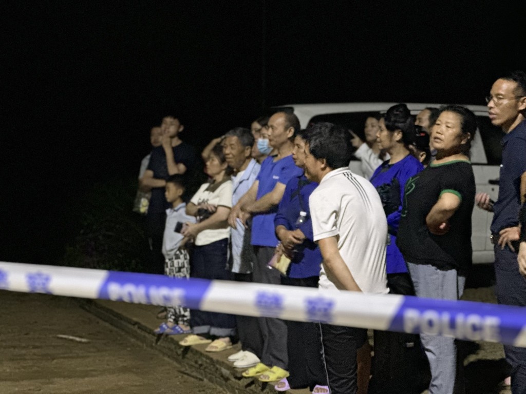 6月24日晚间,警戒线外的人群。