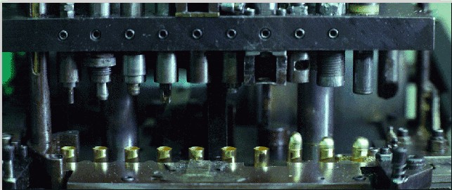 ▲一排排子弹的自动生产过程