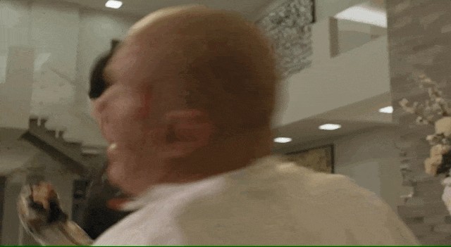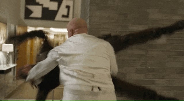 或许年纪大的缘故,这段打斗哑火,全靠后期音效来补。