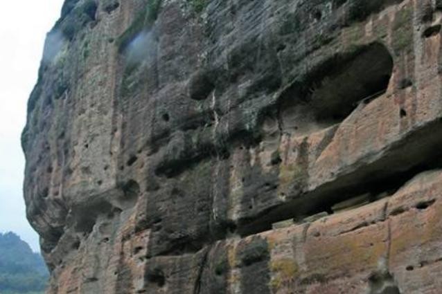 这些悬棺层层高悬于崖壁上,统一面向东方。
