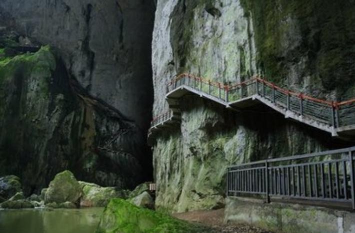 洞穴高达大约100米有余,进入其中,感觉空旷异常,