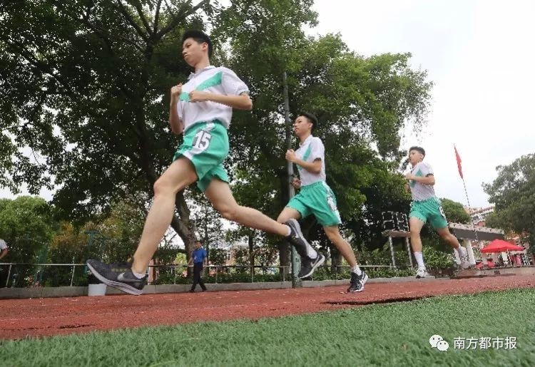 学生在参加耐力跑考试。南都记者冯宙锋 摄