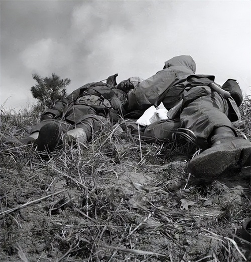 这群敌人哪想到志愿军埋伏在那里,遭到痛击后,他们放弃偷袭,丢下战友的尸体,匆忙退回山坡底下。