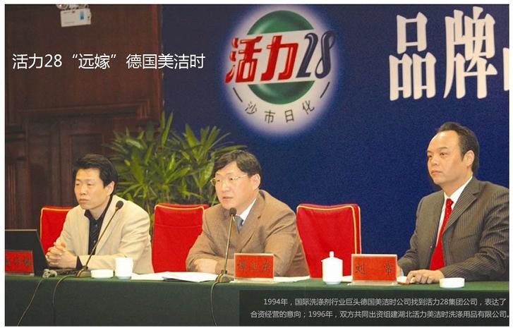 合资成立的美洁时公司,由中方占股40%,德方占股60%,并由德方负责经营管理,同时美洁时公司享有“活力28”等品牌50年的独占、无偿使用权。