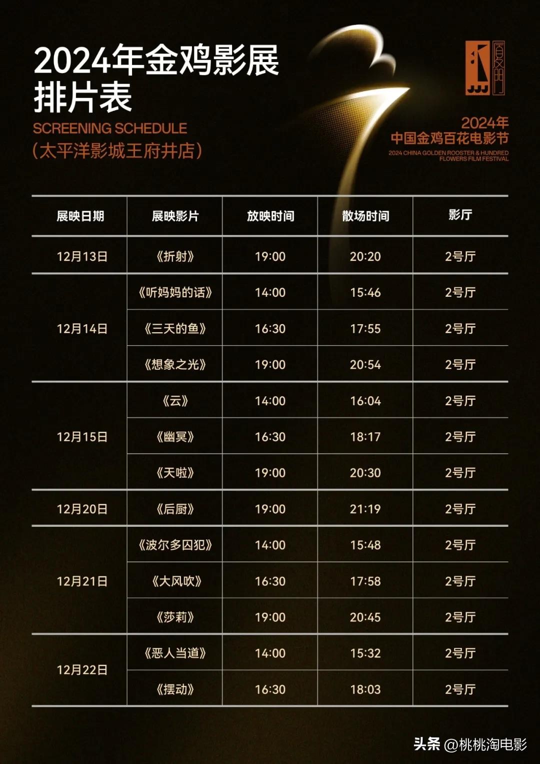 以下是巡展各城市的排片表及巡展片单介绍。